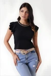 • Fırfır Kollu Zincir Kolyeli Örme Bluz