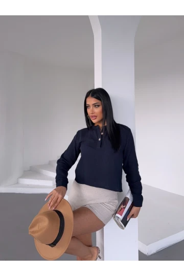 Kadın Lacivert Hakim Yaka Müslin Gömlek Bluz HZL25S-DSB1515