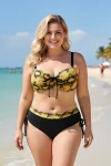 Kadın Sarı Siyah Desenli Taş İşlemeli Toparlayıcı Büyük Beden Bikini Takım HZL25S-LC3333