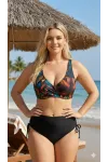 Kadın Siyah Çiçek Desenli Astarlı Büyük Beden Bikini Takımı HZL26S-LC21202