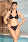 Kadın Siyah Deri Görünümlü İp Bağlamalı Bikini Takımı HZL24S-AR1929