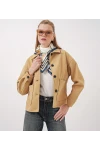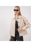 • Kadın Düğmeli Cepli Kısa Kaşe Ceket