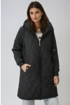 Kadın Siyah Kapitone Uzun Şişme Mont HZL22W-BD151381