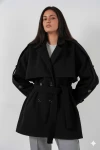 Kadın Siyah Premium Midi Boy Astarlı Kaşe Kaban HZL25W-BD191571