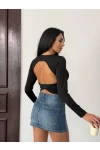 Kadın Siyah Sırt Dekolteli  Uzun Kollu Sandy Bluz HZL25W-FRY123381