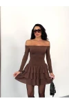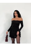 Straplez Yaka Kat Kat Etek Detaylı Mini Elbise