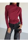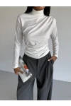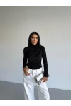 Kadın Siyah Uzun Kollu Drape Detaylı Boğazlı Sandy Bluz HZL25W-FRY123301