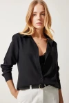 Kadın Siyah Yumuşak Dokulu Basic Gömlek HZL24W-BD1202091
