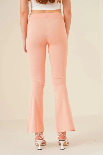 Kadın Somon Fitilli Yırtmaçlı Şekillendirici İspanyol Paça Likralı Örme Pantolon HZL23S-BD165481