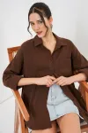 Kadın Tek Cepli Oversize Müslin Gömlek 20353 - Siyah