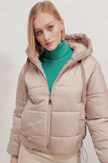 Kadın Vizon Kapüşonlu Bel Büzgülü Şişme Mont HZL22W-BD151171