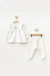 Kız Bebek Tavşan Nakışlı Sweatshirt Pantolon 2  li Alt Üst Bebek Takımı 3 Ay - 18 Ay