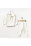 Kız Bebek Tavşan Nakışlı Sweatshirt Pantolon T-shirt 3 lü Alt Üst Bebek Takımı 3 Ay-36 Ay