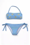 Kız Çocuk Lacivert Beyaz Çizgili Arı Çıkartmalı 4-12 Yaş Straplez Bikini Takım HZL24S-LC3228
