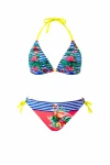 Kız Çocuk Mavi Pembe Flamingo Glow Desenli 6-14 Yaş Üçgen Bikini Takım HZL26S-LC19018