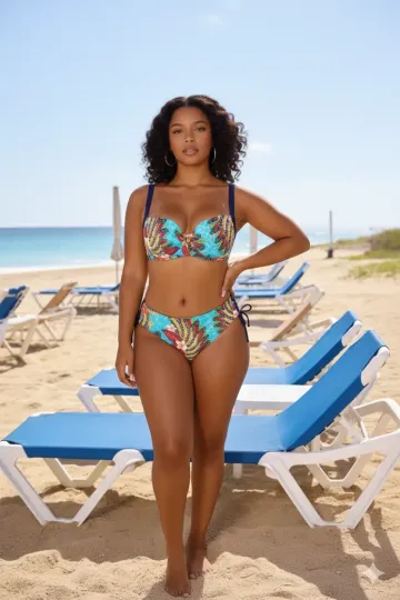 Kadın Lacivert Çok Renkli Yüksek Bel Toparlayıcı Büyük Beden Bikini Takım HZL24S-LC7015