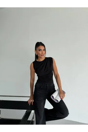 Kadın Siyah Büzgülü Kolsuz Sandy Bluz HZL26W-FRY122751