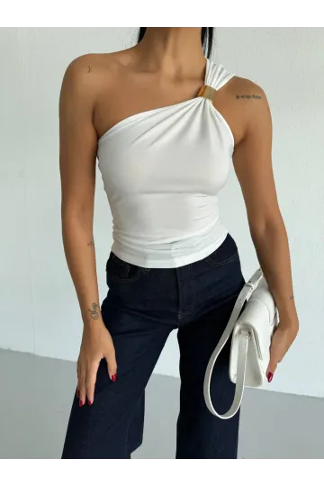 Kadın Beyaz Tek Omuz Gold Metal Detaylı Sandy Bluz HZL26S-FRY123821