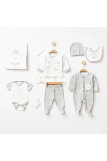 Erkek Bebek Ayı Nakışlı 10 Lu Hastane Çıkış Seti 0 Ay - 3 Ay