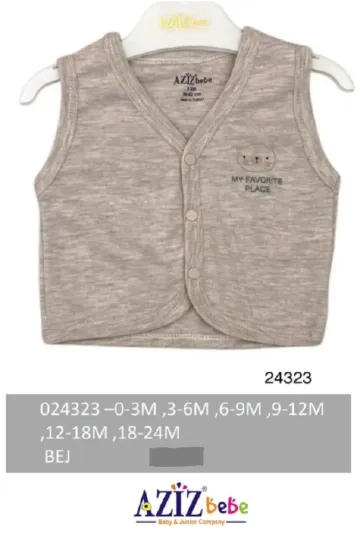 Erkek Bebek Çıtçıtlı Ayı Nakışlı Yelek 3 Ay - 24 Ay