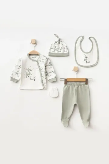 Aziz Bebe Kız Bebek Animal Desenli % 100 Pamuk 5 Li Hastane Çıkış Seti 0 Ay - 3 Ay