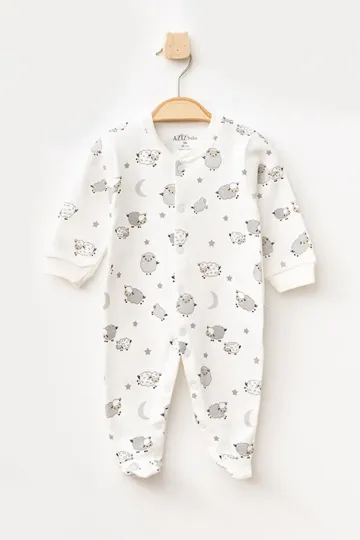 Erkek Bebek Çıtçıtlı Kuzu Desenli Patikli Tulum 0 Ay - 6 Ay