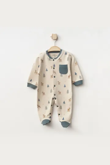 Erkek Bebek Çıtçıtlı Geyik Desenli Patikli Tulum 0 Ay - 6 Ay - LCW