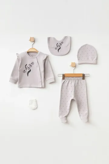 Kız Bebek Çiçek Desenli 5 Li Hastane Çıkış Seti 0 Ay - 3 Ay