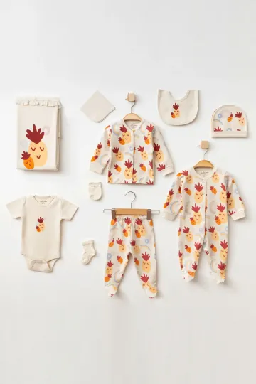 Kız Bebek Ananas Desenli 10 Lu Hastane Çıkış Seti 0 Ay - 3 Ay