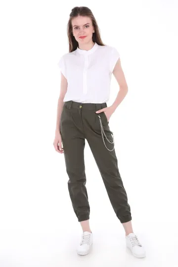 6445 ZİNCİR AKSESUARLI KARGO PANTOLON - Haki