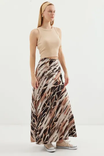 Kadın Desenli Saten Etek 15877 - Ekru