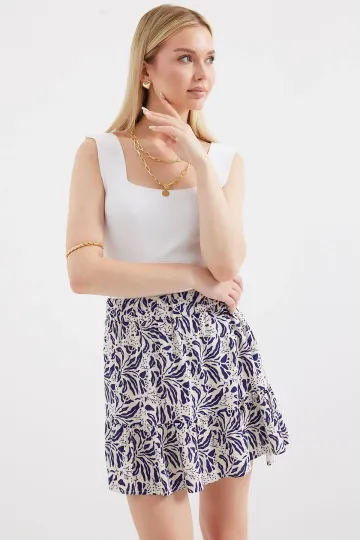 1884 Desenli Viskon Mini Etek - Lacivert