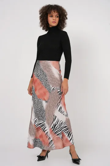 Kadın Desenli Saten Etek 15877 - Turuncu