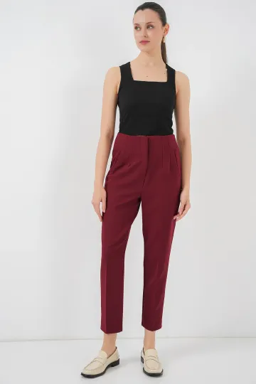 6650 Yüksek Bel Kumaş Pantolon - Bordo