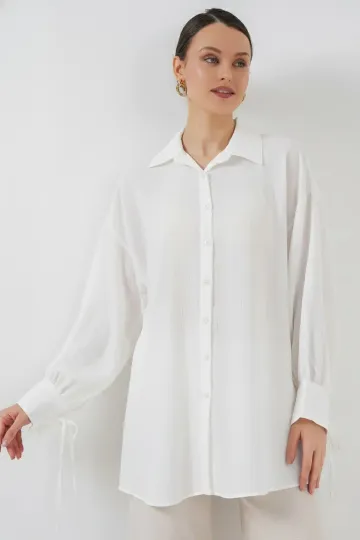 Kadın Oversize Bağcıklı Gömlek 5954 - Beyaz