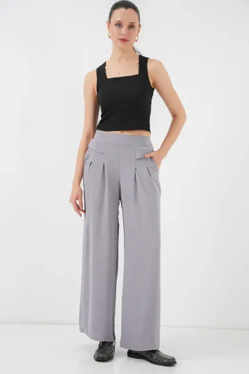 Kadın Geniş Paça Pileli Pantolon 6718 - Gri