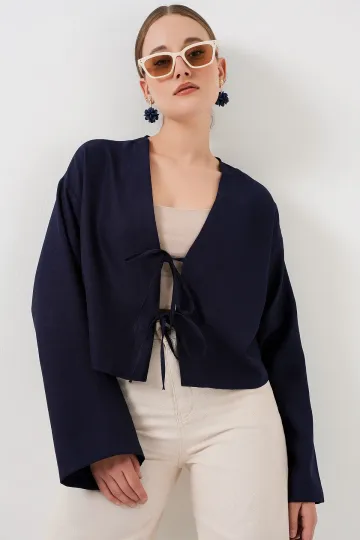 Önü Bağlamalı Keten Kimono 960 - Lacivert