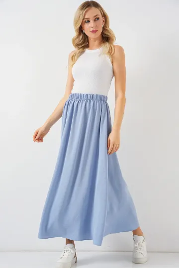 Kadın Uzun Ayrobin Etek 8050 - Mavi