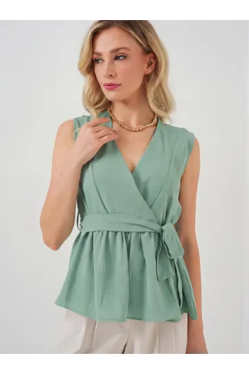 Kadın Kruvaze Yaka Kolsuz Bluz 966 - Çağla