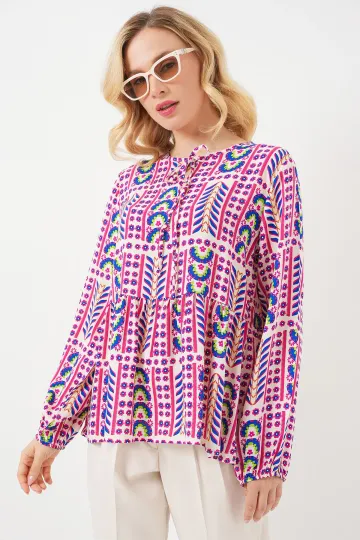 Kadın Desenli Uzun Kol Bluz 970 - Fuşya