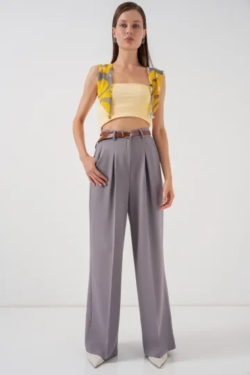 Kadın Yüksek Bel Palazzo Pantolon 30051 - Gri