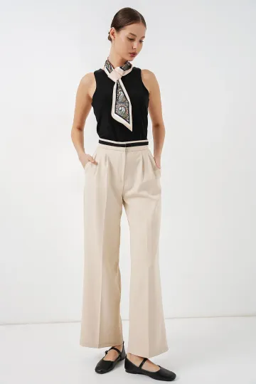 Kadın Geniş Paça Kumaş Pantolon 30088 - Krem