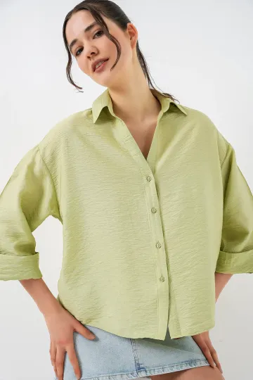 Kadın Oversize Kısa Kol Gömlek 20315 - Çağla