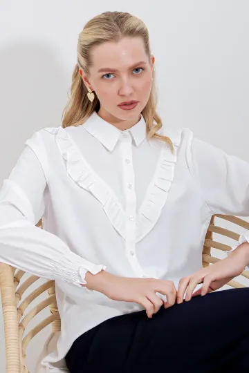 20223 Fırfırlı Uzun Kol Gömlek - Beyaz