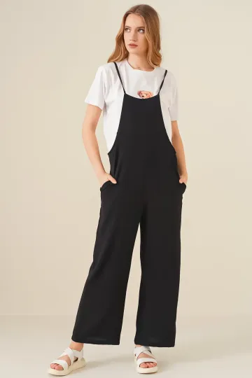 7019 Askılı Bahçivan Tulum - Siyah