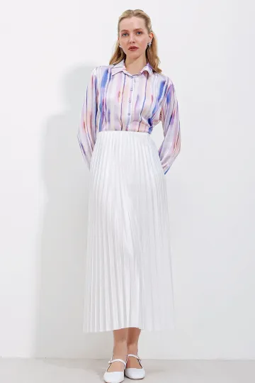 8009 Deri Görünümlü Piliseli Etek - Beyaz