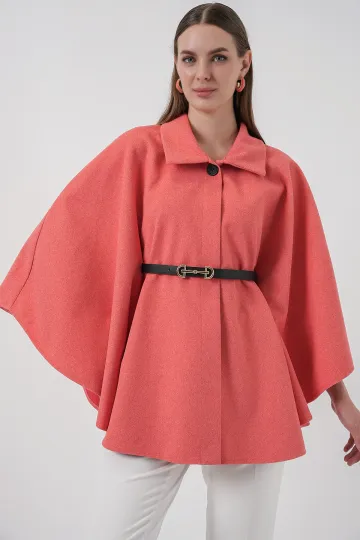 Kadın Kemerli Kaşe Panço 9170 - Somon
