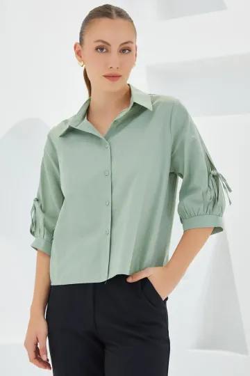 Kadın Kol Detaylı Çağla Yeşili Crop Gömlek 20246