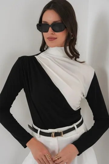 940 Büzgü Detaylı Sandy Bluz - Siyah