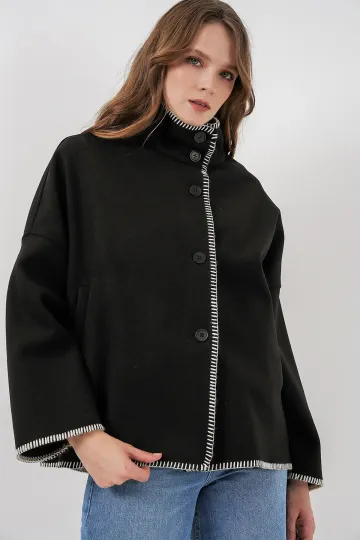Kadın Nakışlı Kaşe Ceket 9167 - Siyah